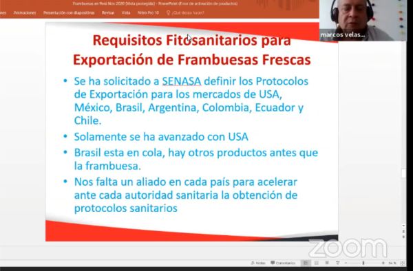 Por su parte Marcos Velásquez gerente general de Viveros Andinos destacó la favorable ubicación geográfica de Perú que le permite tener los clima adecuados para una serie de cultivos como el de la frambuesa. «Por ello Perú puede tener frambuesa todo el año y cultivar en diferentes regiones desde Piura hasta Tacna», dijo.